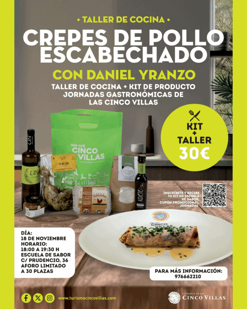 Cada inscripción incluye el taller de cocina y un kit de producto local de las Cinco Villas, para que los participantes puedan recrear las recetas en casa y seguir disfrutando de los sabores de la comarca.